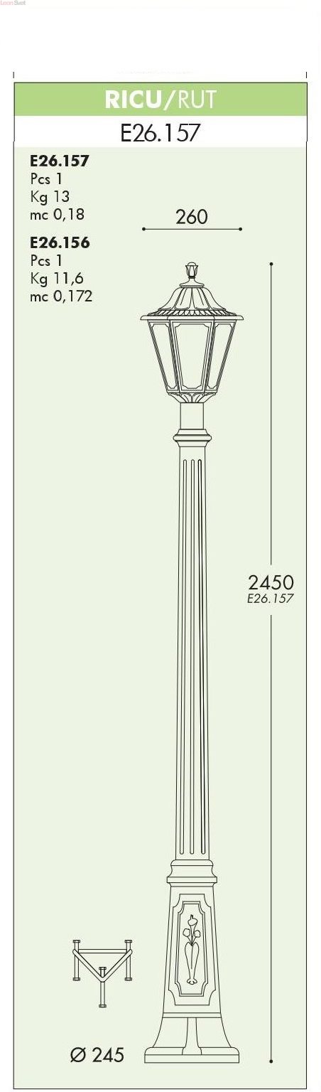 Столб фонарь для улицы Ricu на основании Rut артикул E26.157.000.WXE27 от Fumagalli