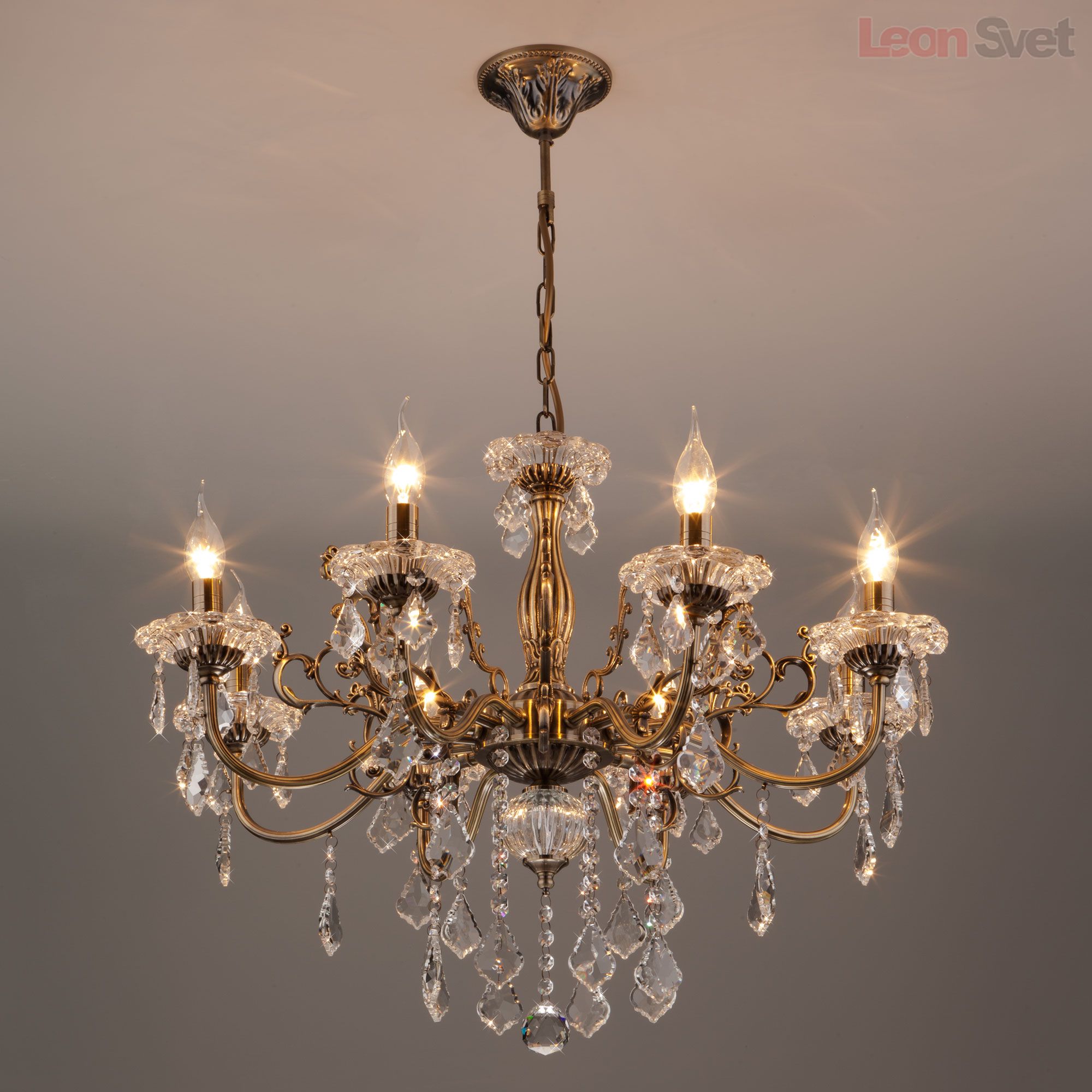 Подвесная люстра 3281/8 античная бронза/прозрачный хрусталь Strotskis от Евросвет