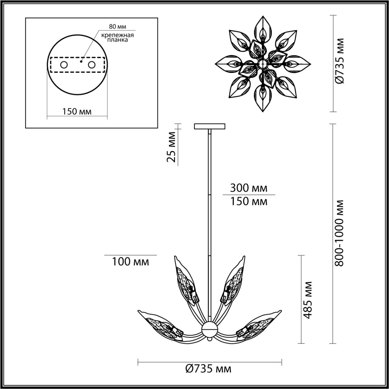 - Материал плафона: стекло