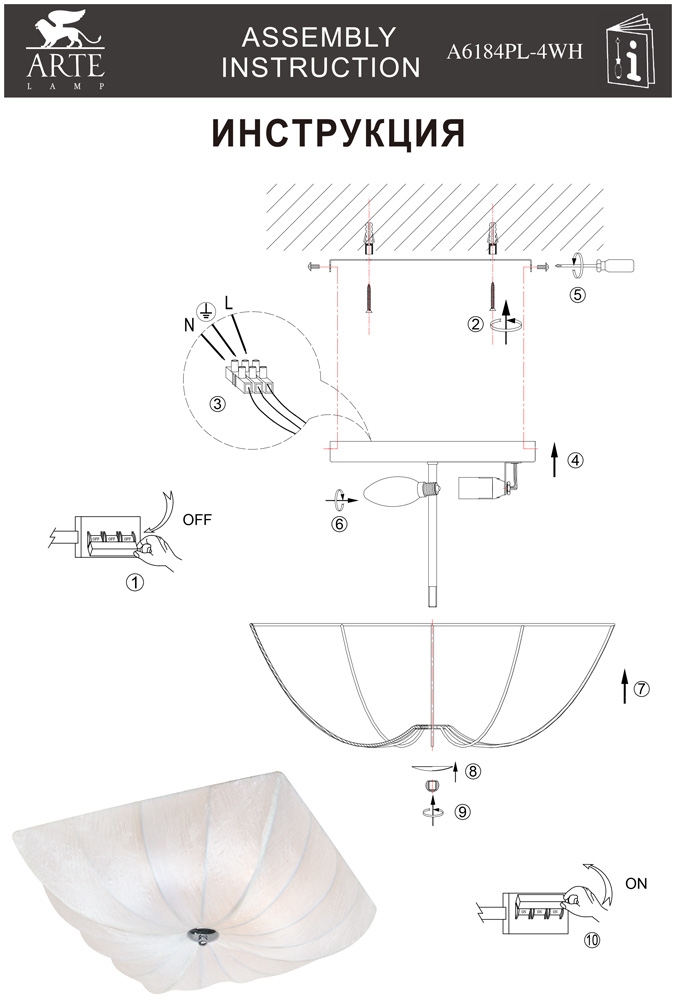 Мы работаем только с официальным поставщиком продукции Arte Lamp, на данный товар имеются сертификаты соответствия, копии которых вы можете запросить у наших менеджеров. Остерегайтесь подделок!