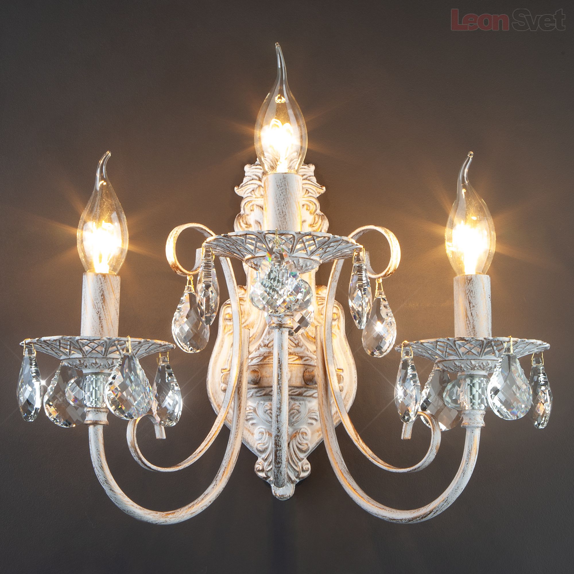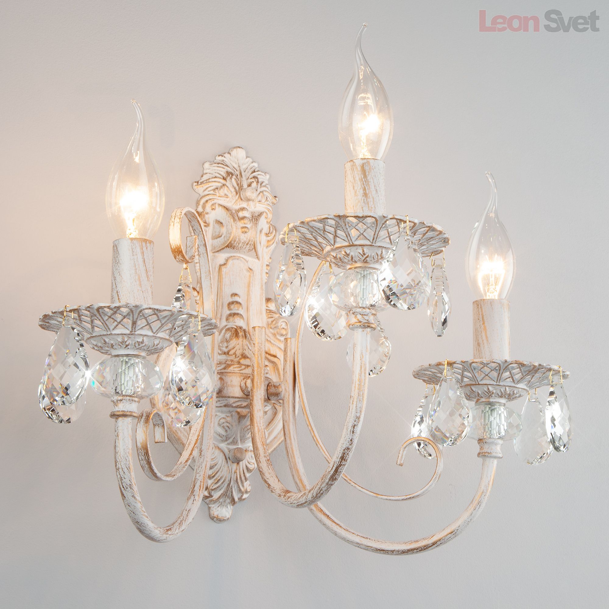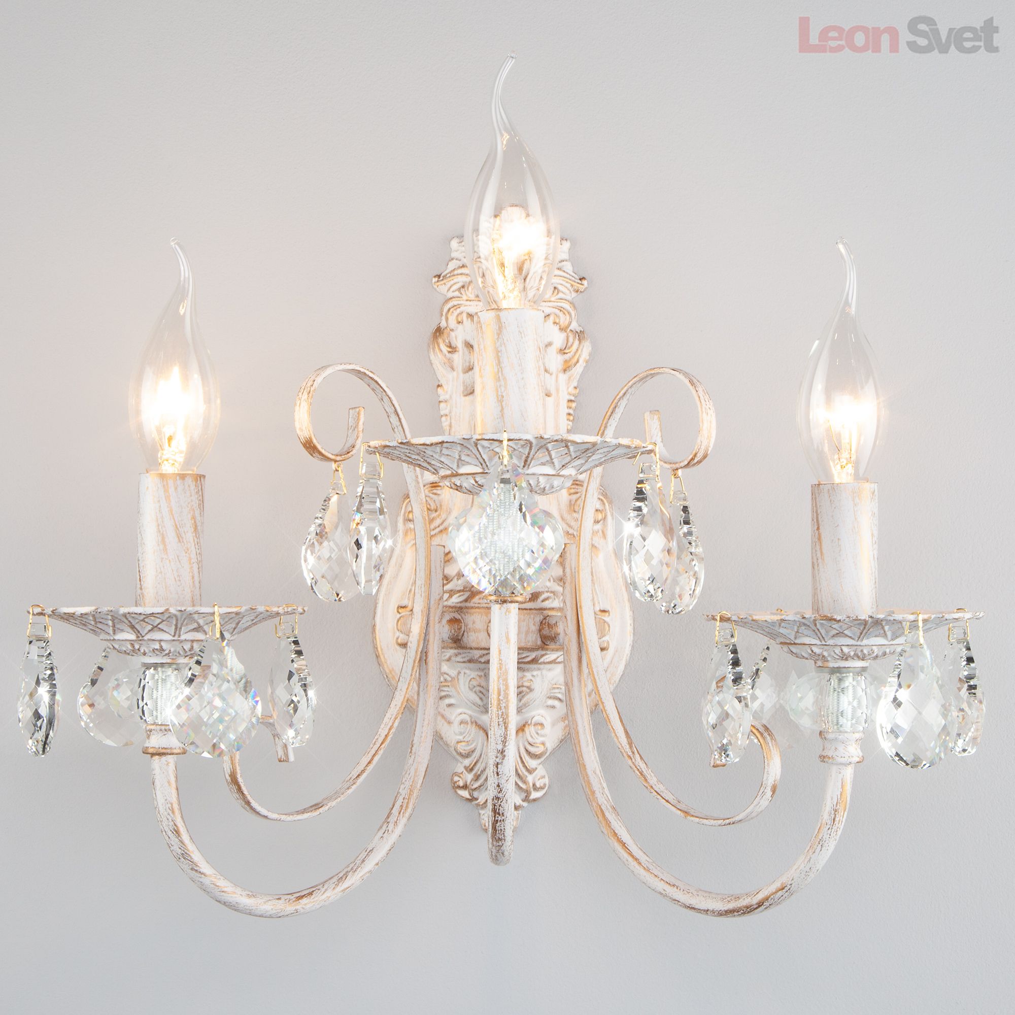 Настенный светильник 3305/3 белый с золотом/прозрачный хрусталь Strotskis от Евросвет