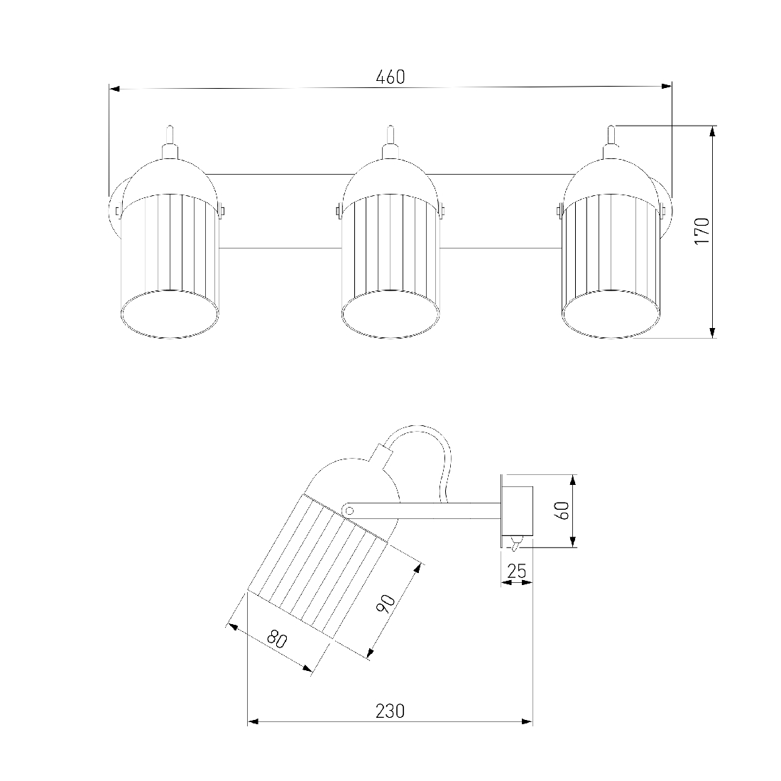 - Количество ламп: 3