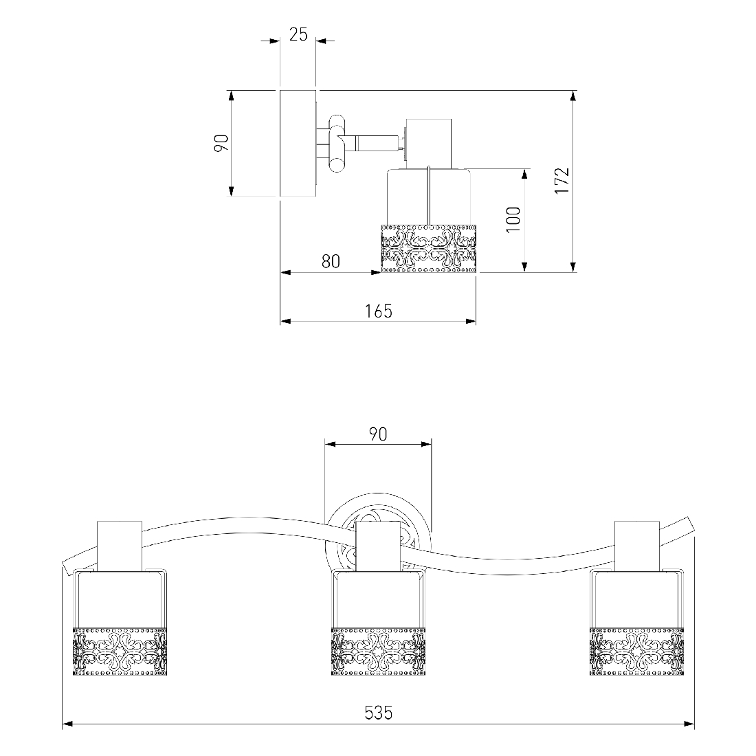 - Количество ламп: 3