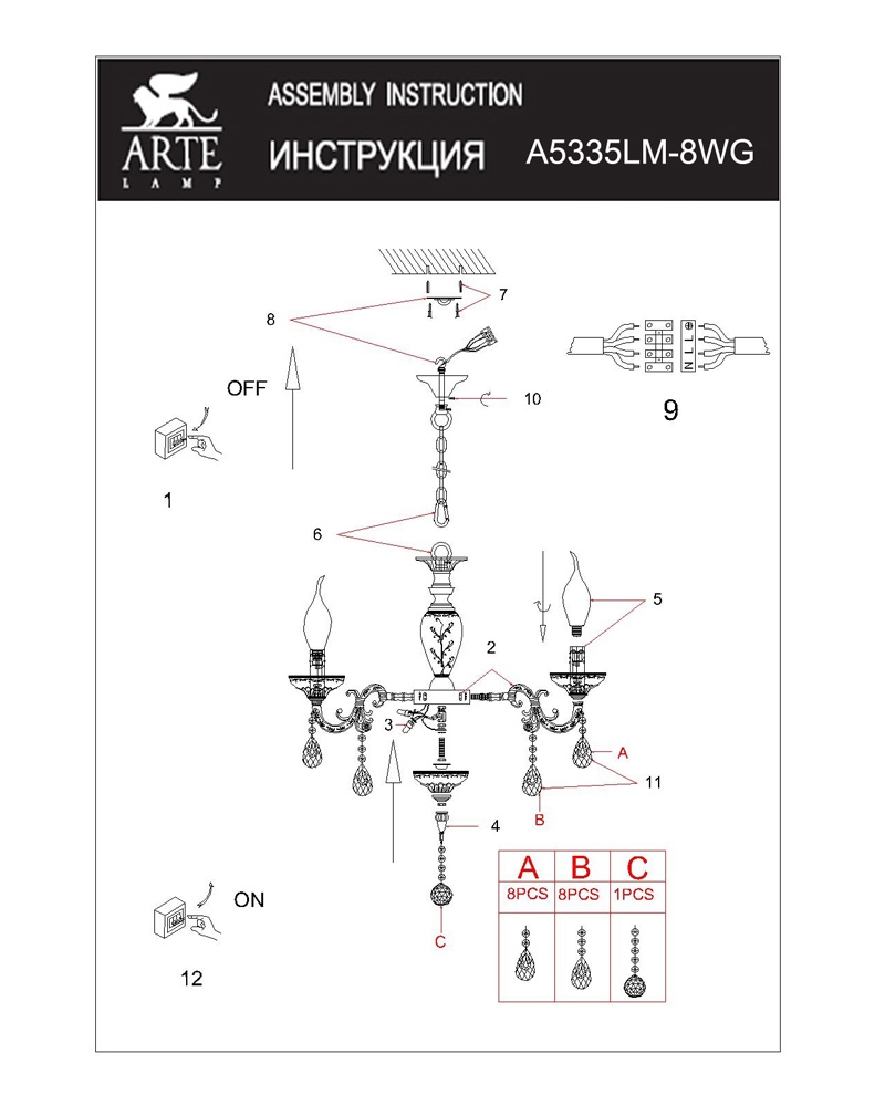 Мы работаем только с официальным поставщиком продукции Arte Lamp, на данный товар имеются сертификаты соответствия, копии которых вы можете запросить у наших менеджеров. Остерегайтесь подделок!