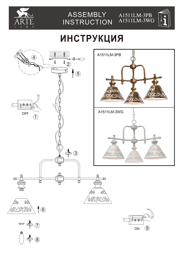 Мы работаем только с официальным поставщиком продукции Arte Lamp, на данный товар имеются сертификаты соответствия, копии которых вы можете запросить у наших менеджеров. Остерегайтесь подделок!