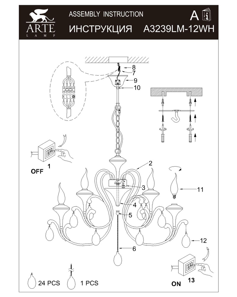 Мы работаем только с официальным поставщиком продукции Arte Lamp, на данный товар имеются сертификаты соответствия, копии которых вы можете запросить у наших менеджеров. Остерегайтесь подделок!