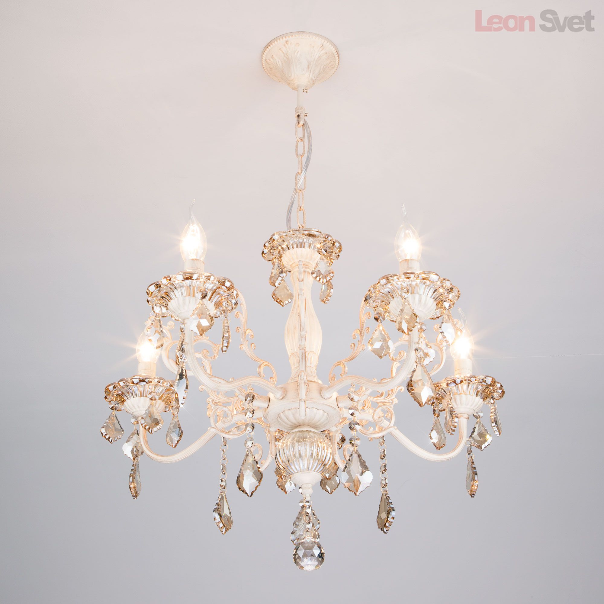 Люстра 3281/5 белый с золотом/тонированный хрусталь Strotskis от Евросвет