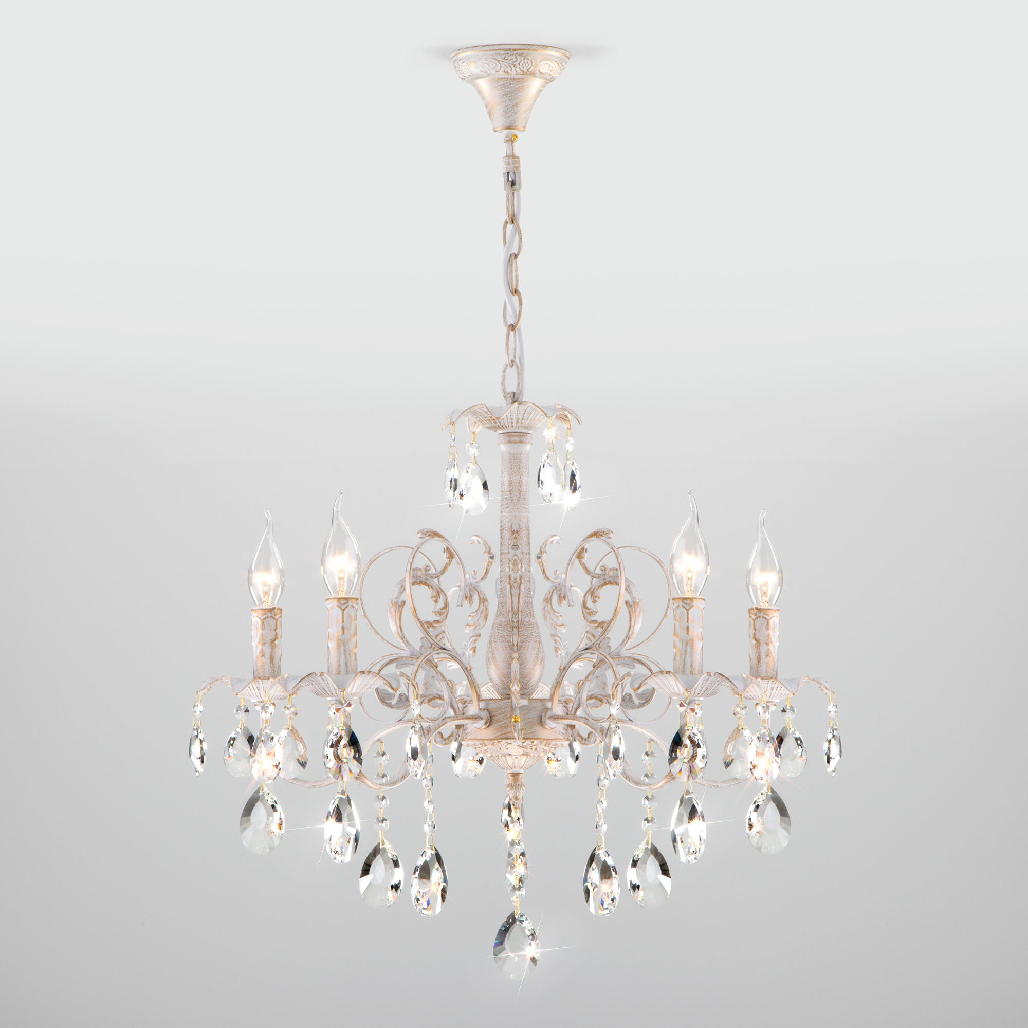 Подвесная люстра Kiva 3113/5 белый с золотом/прозрачный хрусталь Strotskis Eurosvet