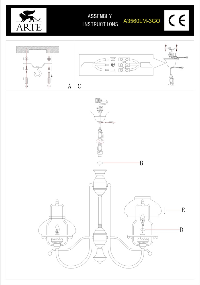 Подвесная люстра Armstrong A3560LM-3GO от Arte Lamp