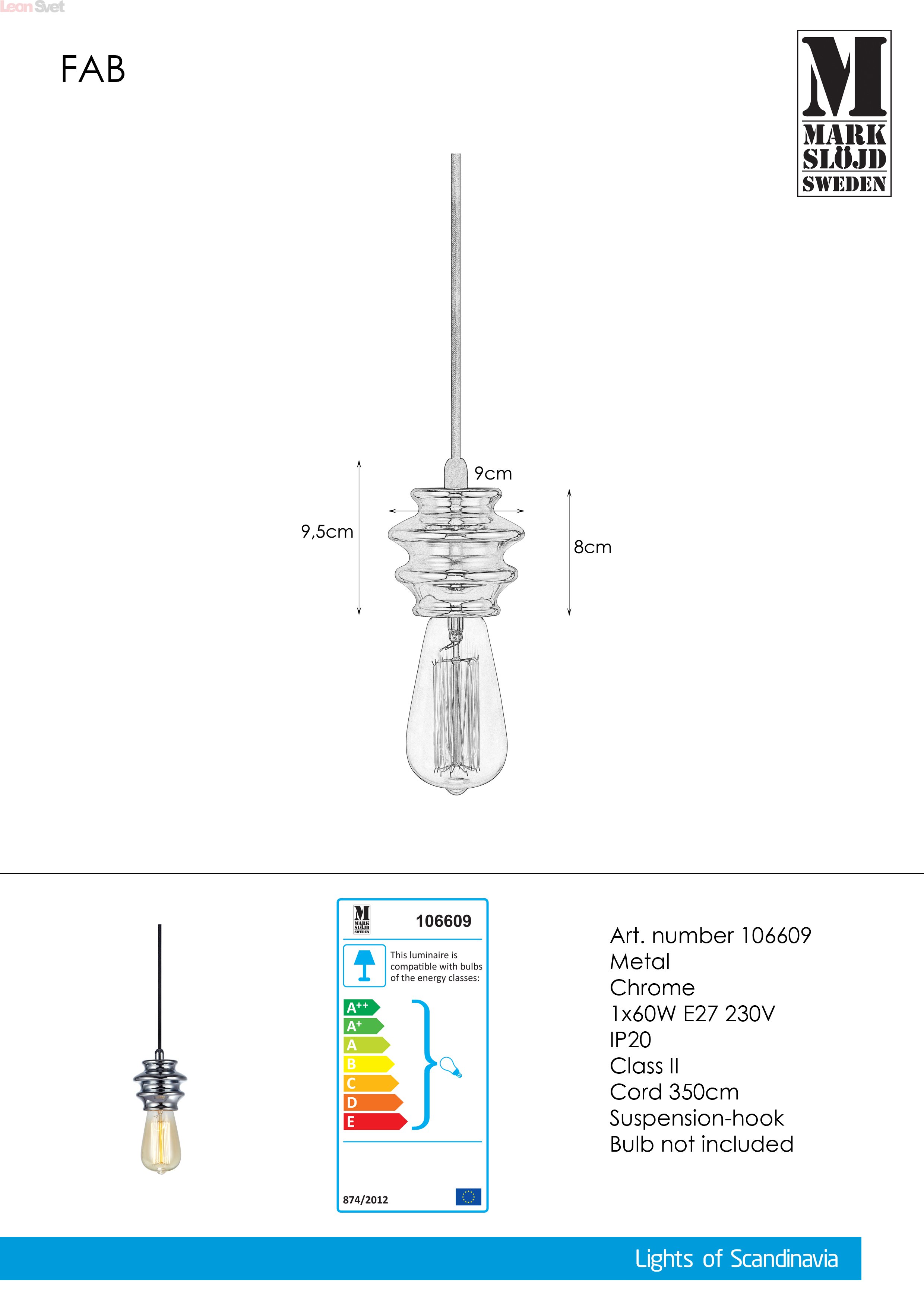 Подвесной светильник 106609 Fab от Markslojd