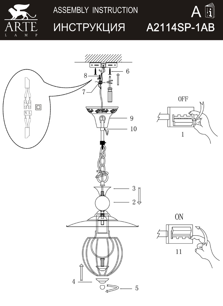 Подвесной светильник Venice A2114SP-1AB от Arte Lamp