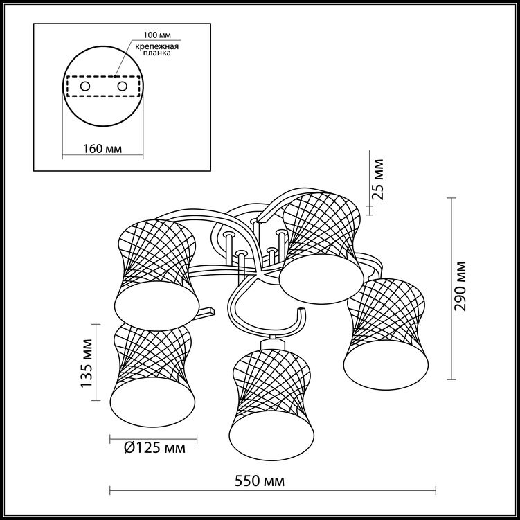 - Количество ламп: 5