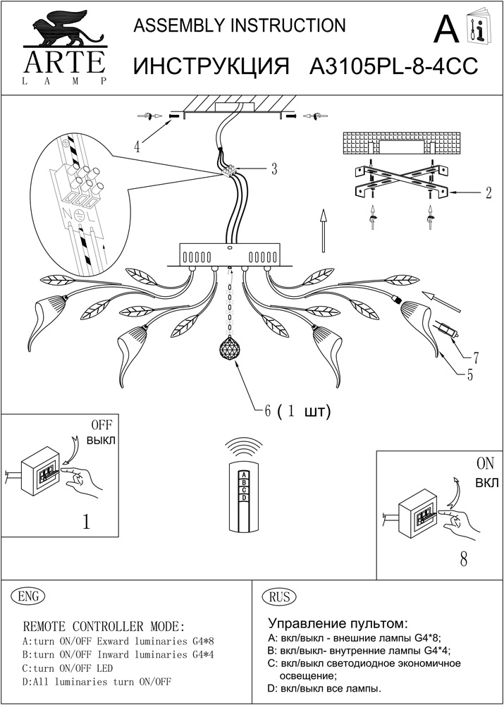Мы работаем только с официальным поставщиком продукции Arte Lamp, на данный товар имеются сертификаты соответствия, копии которых вы можете запросить у наших менеджеров. Остерегайтесь подделок!