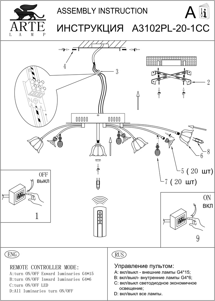 Мы работаем только с официальным поставщиком продукции Arte Lamp, на данный товар имеются сертификаты соответствия, копии которых вы можете запросить у наших менеджеров. Остерегайтесь подделок!