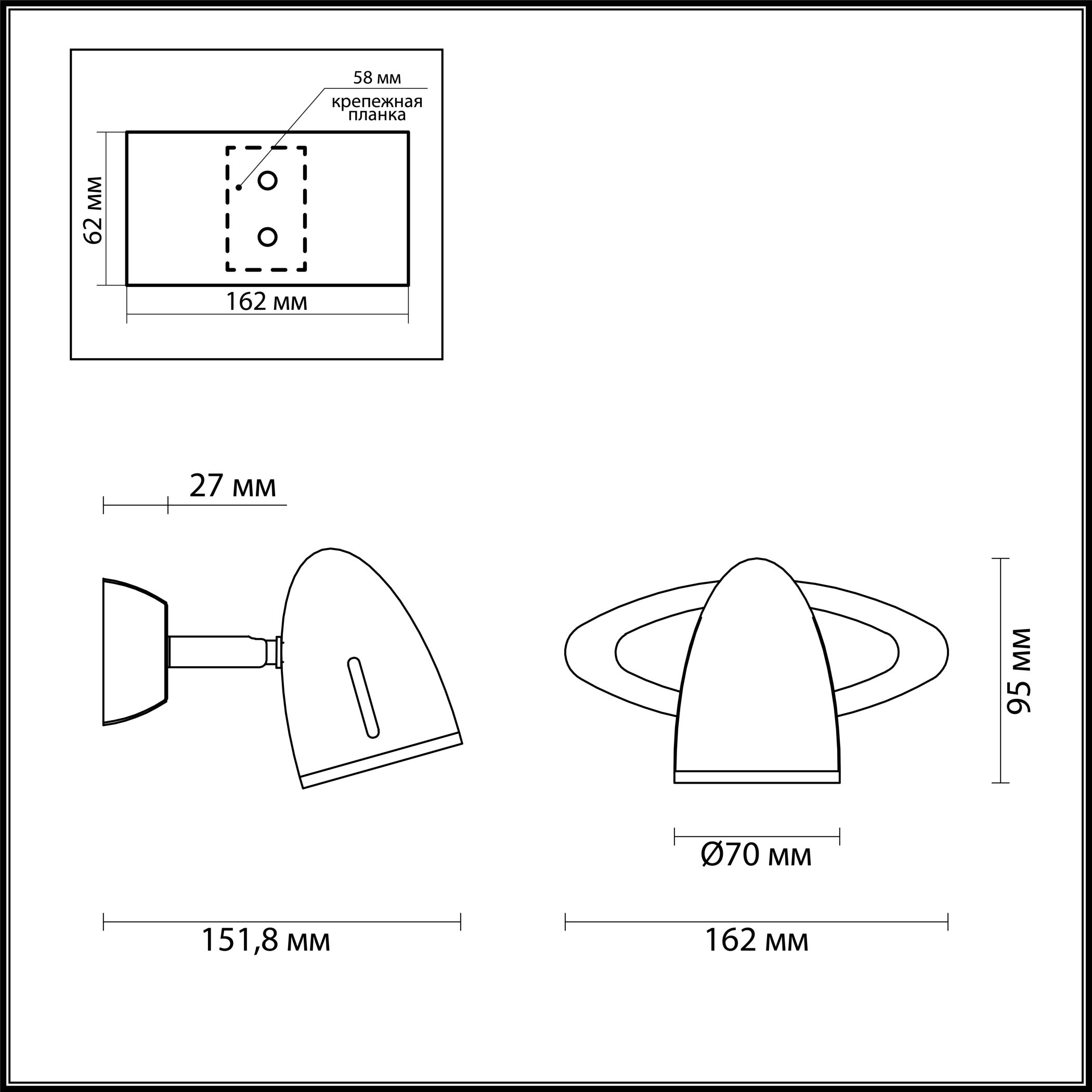 - Направление лампы: поворотный