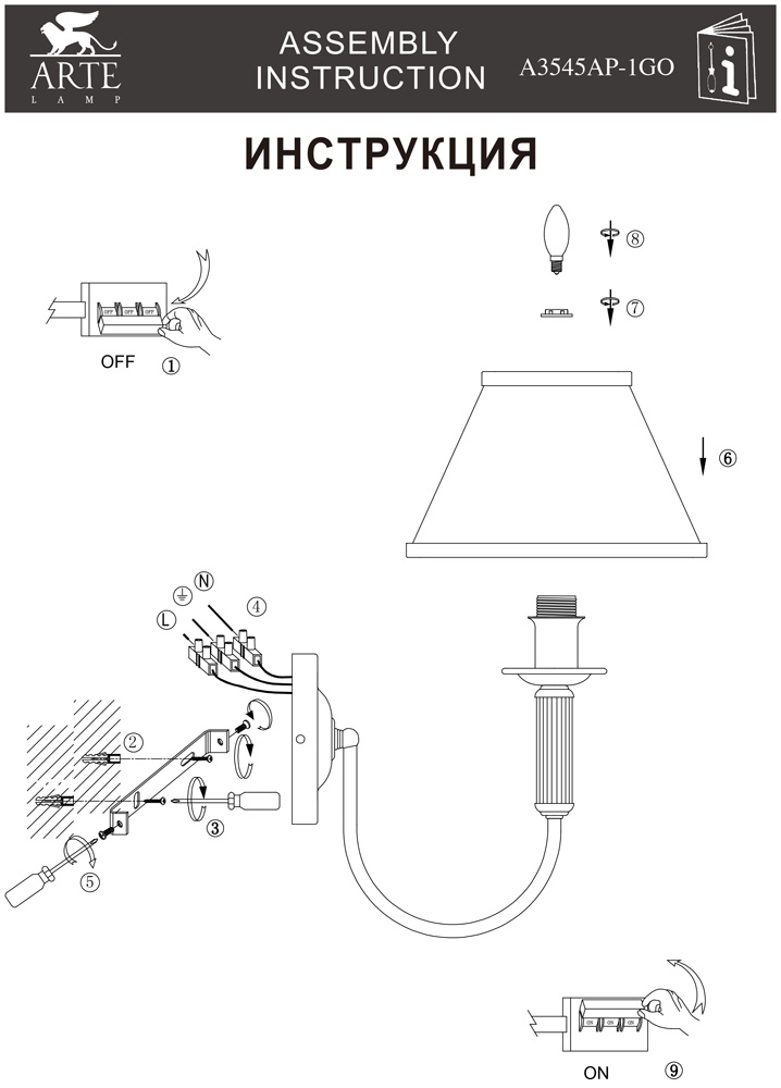 Мы работаем только с официальным поставщиком продукции Arte Lamp, на данный товар имеются сертификаты соответствия, копии которых вы можете запросить у наших менеджеров. Остерегайтесь подделок!