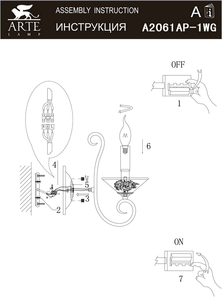 Бра Fiorato A2061AP-1WG от Arte Lamp