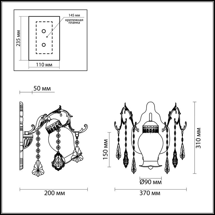 - ↔ Ширина: 370 мм