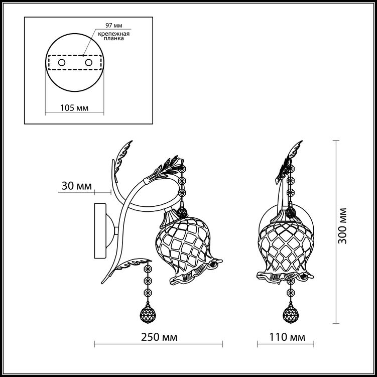 - Материал плафона: стекло