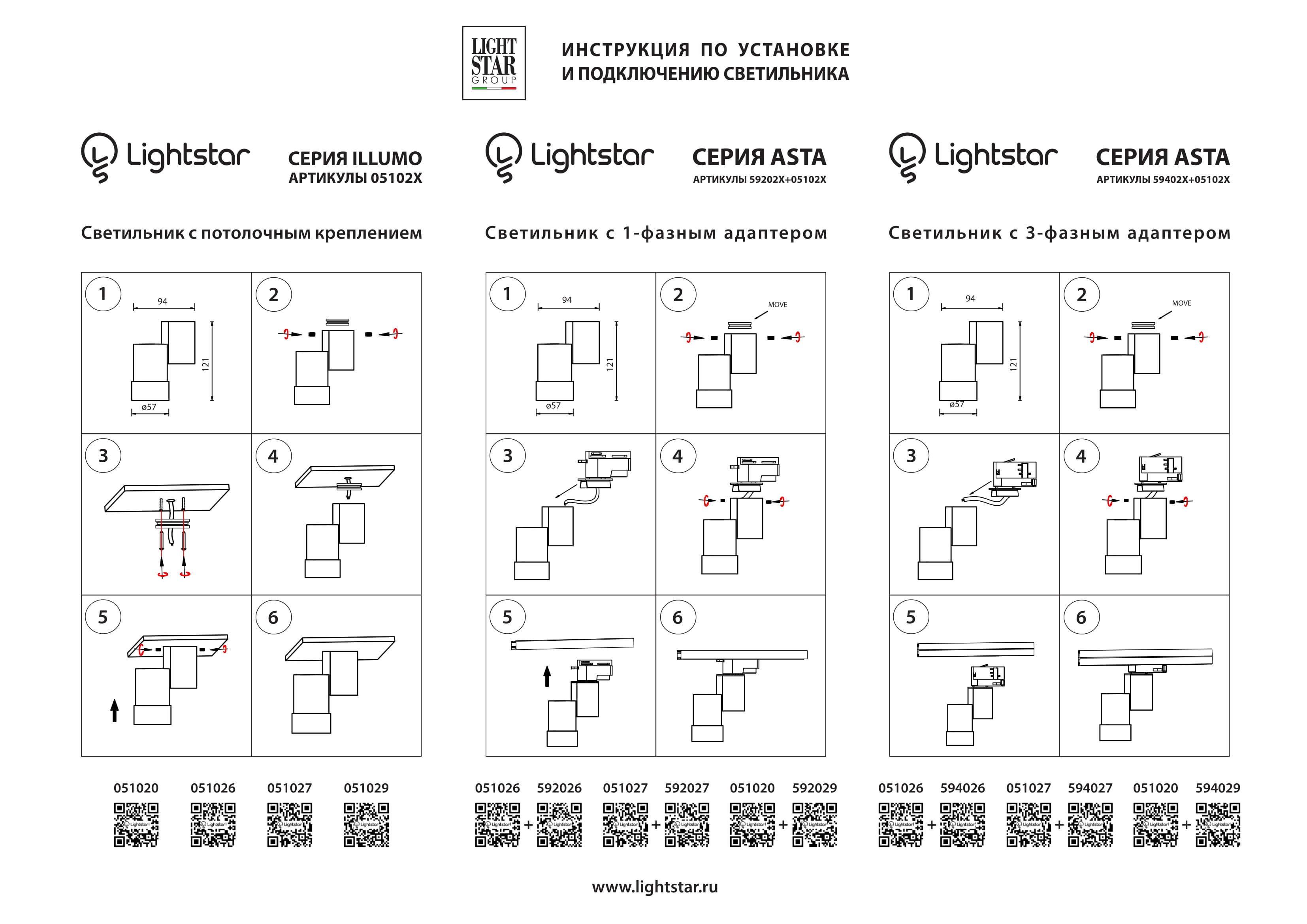 Трековое крепление с 3-фазным адаптером к 05102x/05103x Asta 594026 Lightstar