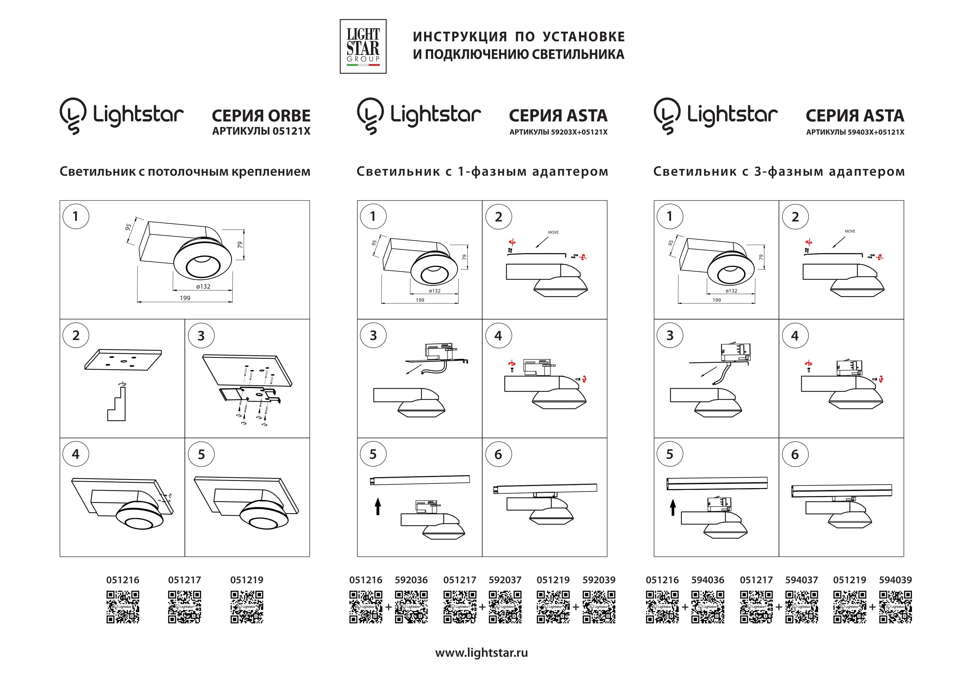 Трековое крепление с 3-фазным адаптером к 05121x Asta 594036 Lightstar