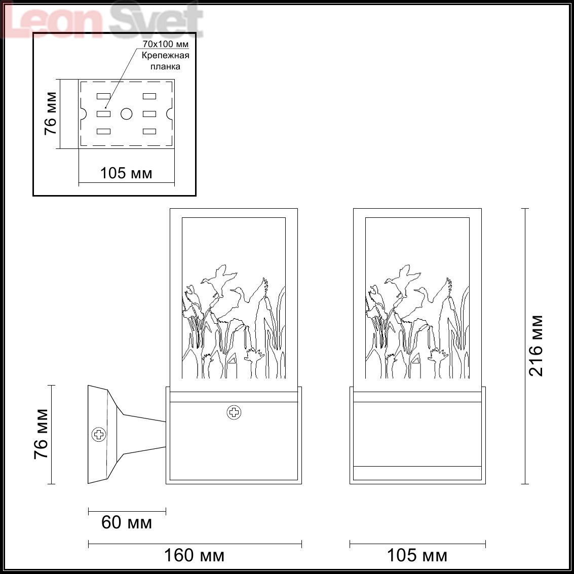 - Цвет плафона: Прозрачный
