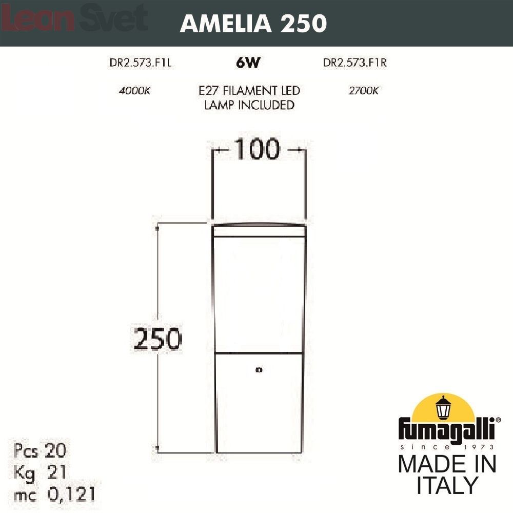 Наземный уличный светильник Amelia DR2.573.000.AYF1R Fumagalli