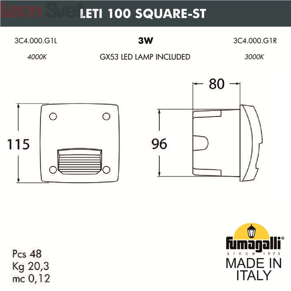 Уличный светильник для ступеней Leti 3C4.000.000.WYG1L Fumagalli