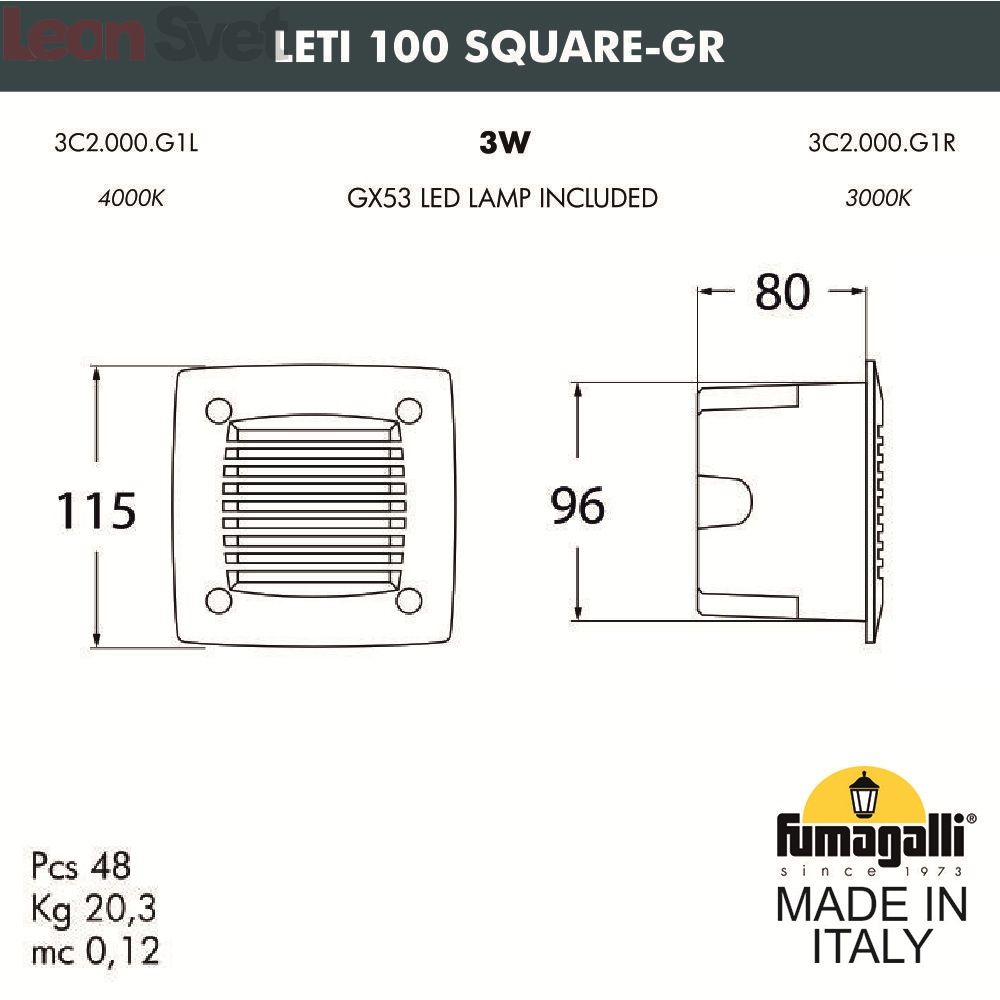 Уличный светильник для ступеней Leti 3C2.000.000.LYG1L Fumagalli