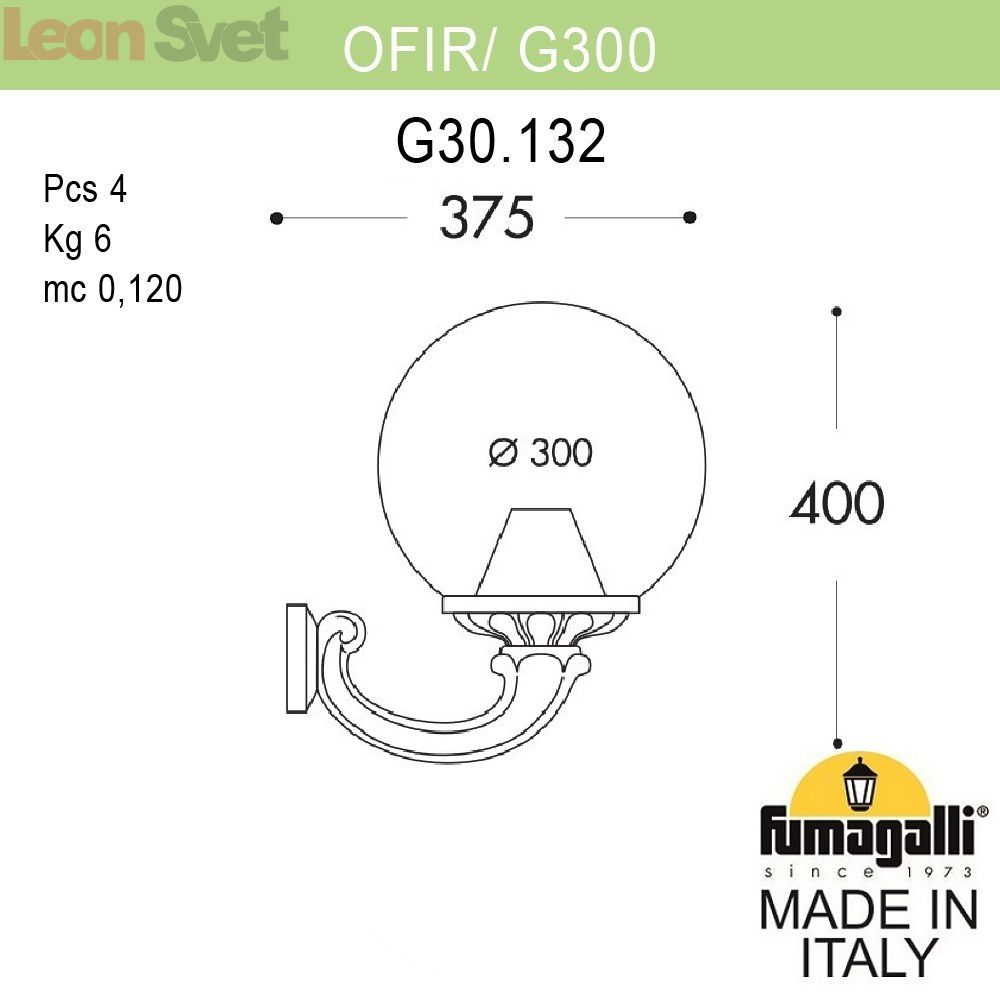 Настенный уличный светильник Globe 300 G30.132.000.AXE27 Fumagalli