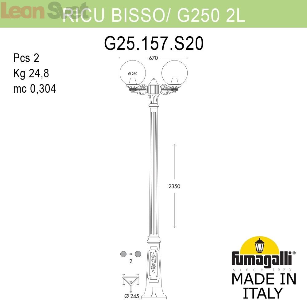 Уличный фонарь Globe 250 G25.157.S20.BZE27 Fumagalli