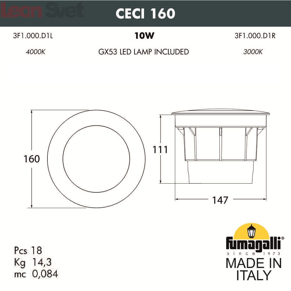 Встраиваемый светильник Ceci 3F1.000.000.AYD1L Fumagalli